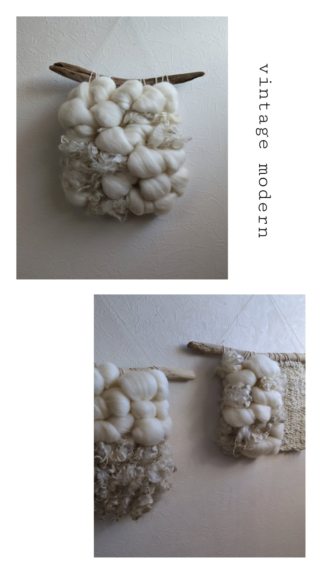 w//34cm h//30cm 2種類のクルクル羊毛❁ 可愛らしくシンプルに仕上げております。 手作業で紡いでいる為藁屑が絡まっております ※自然のもので害はございません